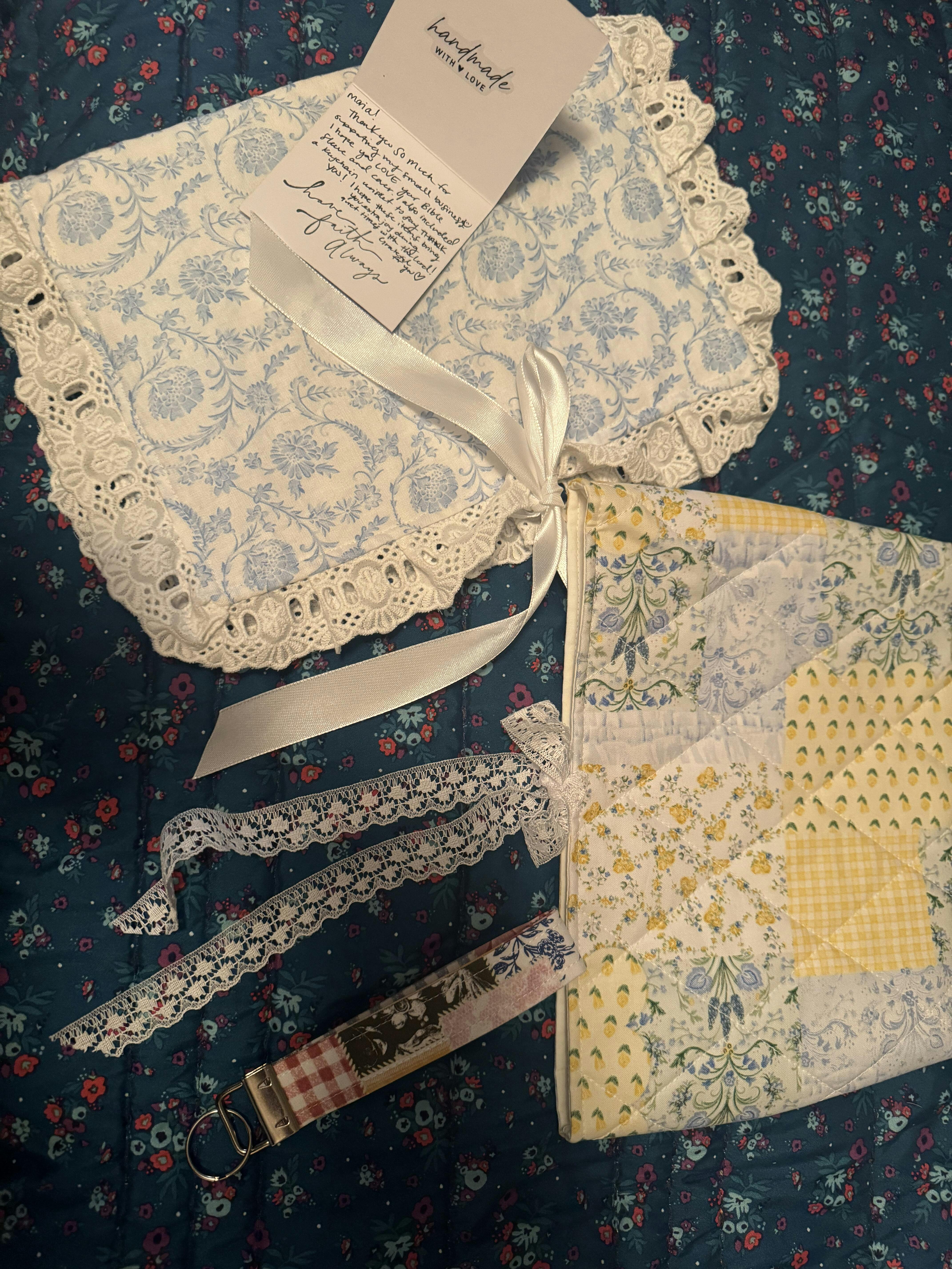 All items are handmade by Breanna. This means some items may take longer to make than others before they are shipped. Most handmade items are made and shipped within 1-2 weeks, however some customs Bible Covers may take 3-4 weeks to make, based on demand.
